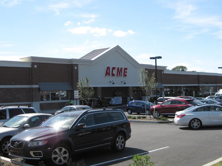 The former Bryn Mawr Acme, a 1956 model which stood on this site for 55 years, was closed on May 12, 2011 to make way for its big fancy replacement. The old location was covered on the blog in May 2011 and can be visited by clicking here. Grand Opening of the new store was June 1, 2012, several month pasts it's original opening date. Construction was met with delays in Fall in 2011 due to an unusually rainy season which included Hurricane Irene. The project was delayed by years due to Acme waiting to acquire the land just next door where a Jaguar dealership stood. Once that deal went through, it was out with the old, in with the new!